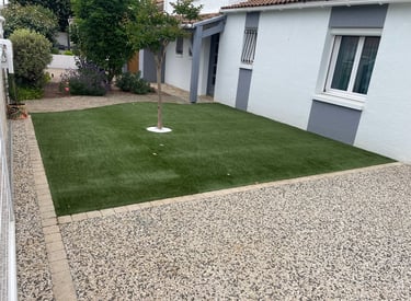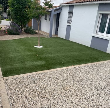 Pose de gazon naturel ou synthétique pour un rendu vert immédiat.